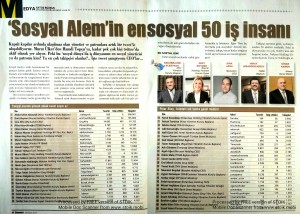 Ekonomist dergisi 28 Nisan sayısında Fatoş Bozkuş “Sosyal Alem’in En Sosyal İş İnsanı” haberini yapmış (haber için Tıklayınız) Bu haberde de yer aldığı gibi İş dünyasının en çok takipçisi olan 6. kişisi (STK Yöneticileri hariç 5.) oldum. Ama “Takip Ettikleri” sayısı itibariyle 1. sıradayım. Takip ettiklerim o kadar çeşitlilik ve güçlü içerikler arz ediyor ki, 1.274 rakamının hakkını veriyorum.
