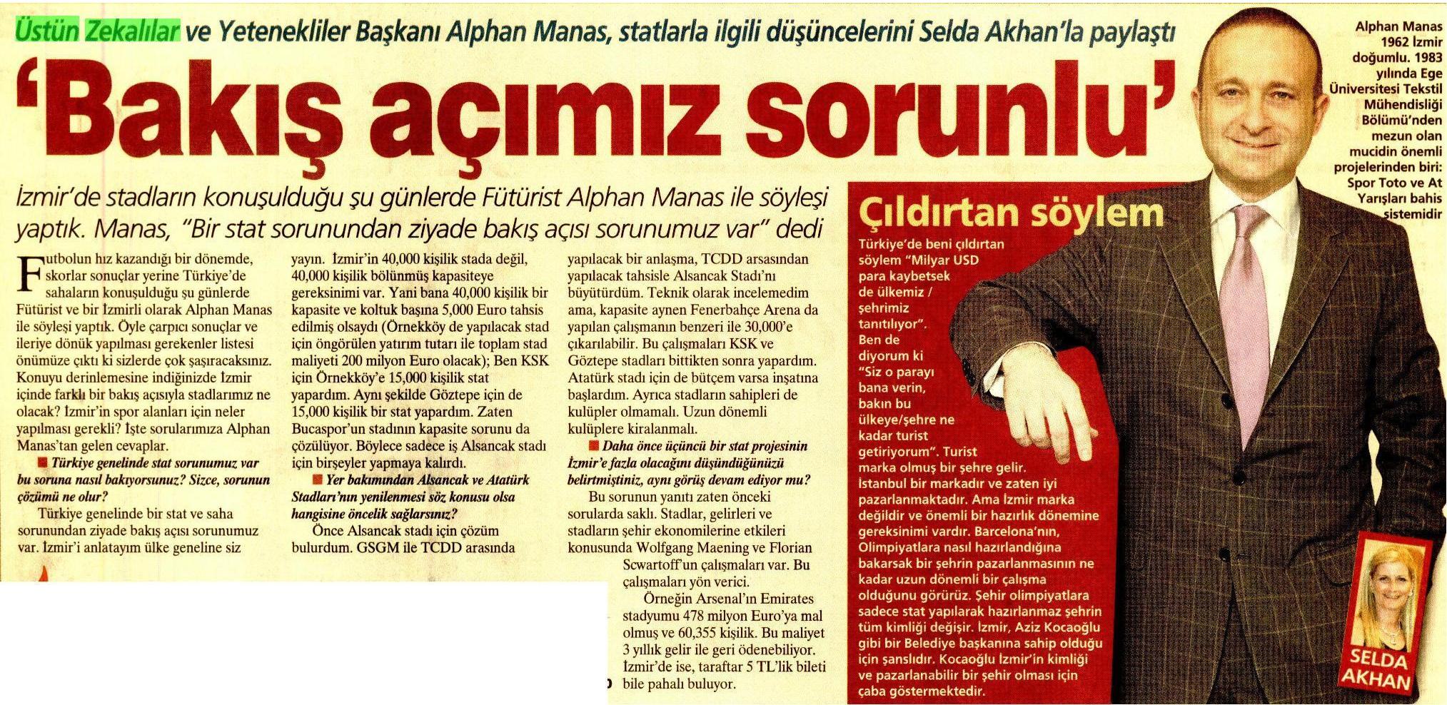 Milleyet gazetesi İzmir muhabirlerinden sevgili Selda Akhan ile yaptığım röportaj 12 Eylül 2010 tarihinde Milliyet (Haber için Tıklayınız) ve Posta (Haber için Tıklayınız) gazetelerinin Ege eklerinde yayınlandı. Sanırım yer sorunu olduğu için röportajın tamamı yayınlanmamış. Ben de sizinle tümünü paylaşmak istiyorum…….